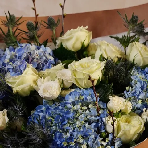 Handcrafted by expert florists atย The Key Boutique, this beautiful bouquet of flowers features a carefully curated selection of fresh blooms. Ideal for those seeking aย blue flower bouquetย or a modernย fresh flower bouquetย that blends aesthetics with emotion.
